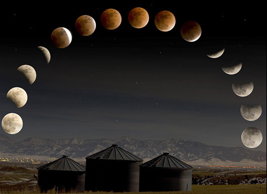 Bao phủ 75%: Với 3/4 đĩa mặt trăng bị che phủ, mặt trăng bây giờ trông giống như một mảnh sắt bị nung nóng đến mức bắt đầu phát sáng. Qua ống nhòm hoặc kính viễn vọng, vùng ngoài của vùng bóng tối thường đủ sáng để chiếu rõ biển và miệng núi lửa trên mặt trăng.